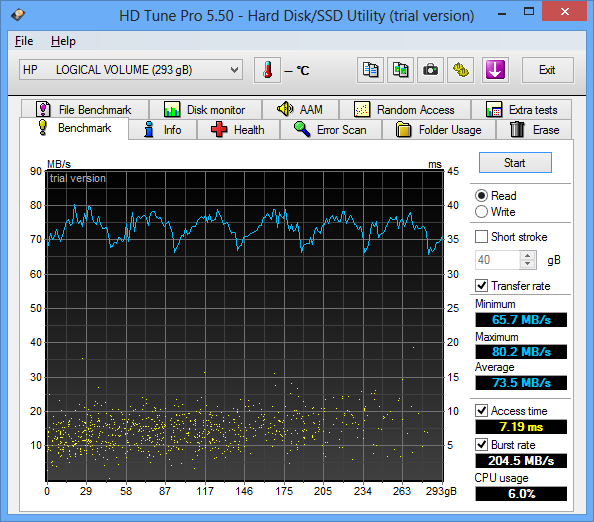 HDTach jeździ po całym dysku, a nie robi tylko kilku sampli, tak jak Crystal Disk Mark, stąd wyniki są niższe.