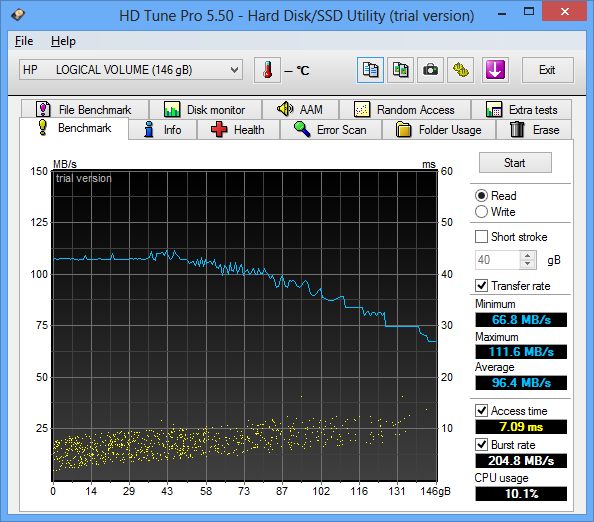 Wyniki testów dysków SAS Savvio o prędkości 10 tysięcy obrotów. Kontroler to HP SA P400.